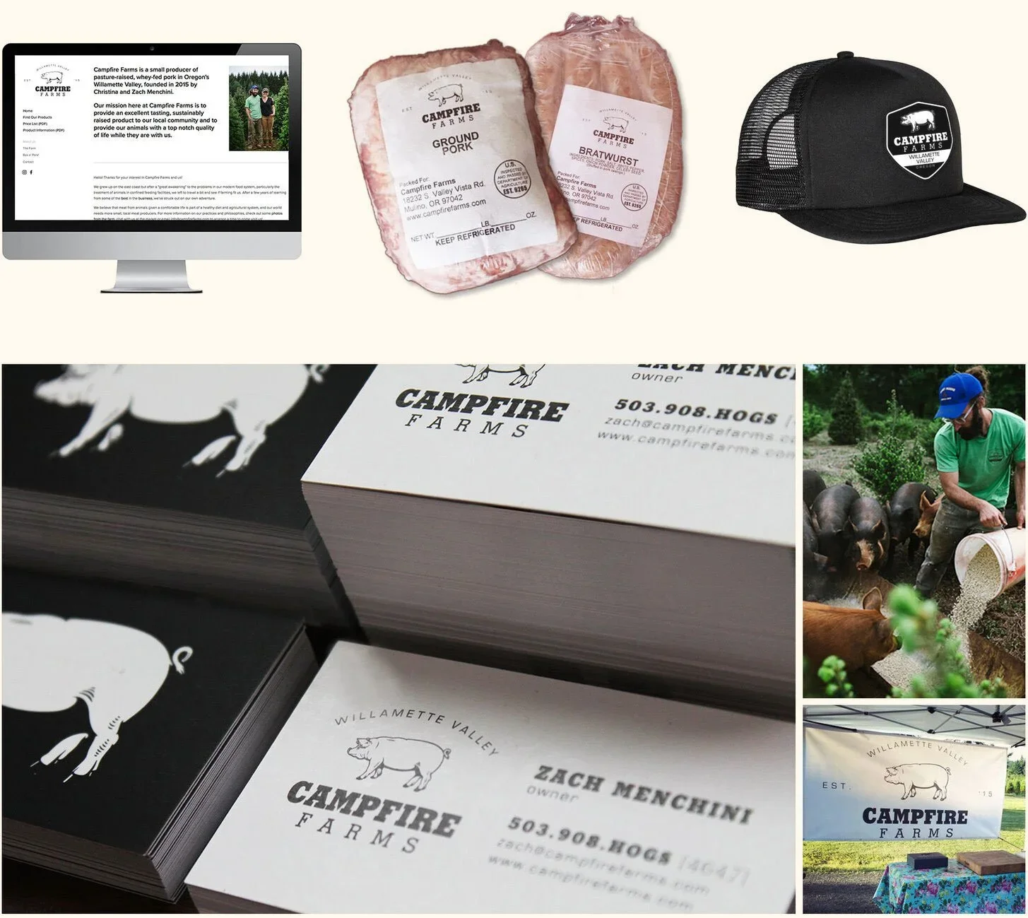 A few years back I took on a fun collaborative branding project for local Portland-area pig farm, Campfire Farms, with my best bud and talented illustrator, Evan Bartholomew.