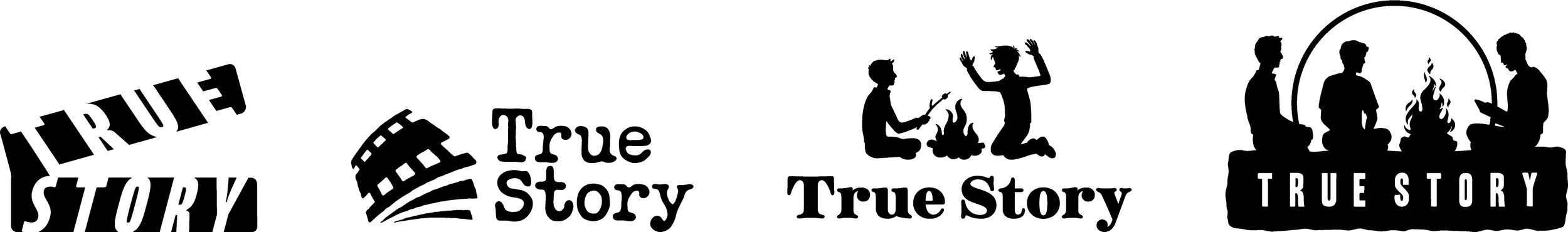 Early explorations ranged from more literal approaches to depicting screenwriting through classic film slates, script paper stacks, and film negative strips, but ultimately segued to a more abstract idea of people sitting around a campfire telling stories.